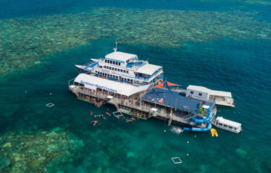 Sunlover Reef Cruises has launched a new two-storey pontoon at Moore Reef on the outer Great Barrier Reef, 40 kilometres east of Cairns. The 50 metre long structure has one of the region’s largest reef sundecks and first floating theme-park style water-slide. The floating facility features a lengthy slide into Reef waters, large seating and shade areas, a bar area and sunbaking recliners.